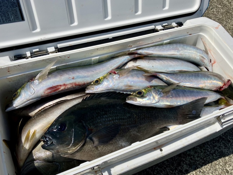 昼前には船中全員のクーラーが魚で一杯になり、予定より早く沖上がり。食べて美味しい魚を存分に釣られて頂き、満足のいく釣行となりました。