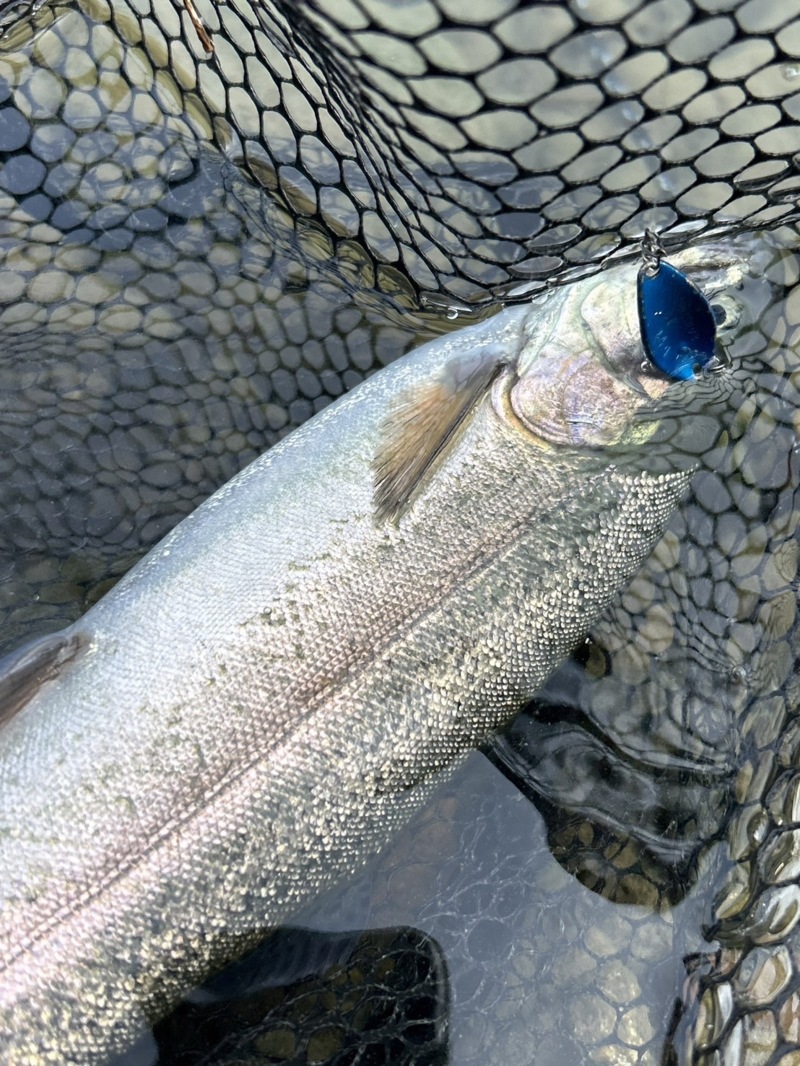 魚が付くポイントへスプーンを流しながら巻いてシャローに差し掛かったところでヒット❗️