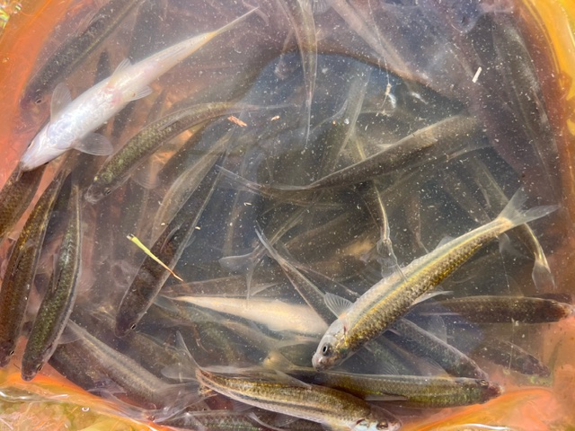 数日前まで水色が良かったのでホンモロコの群れはたくさんいたのですが....