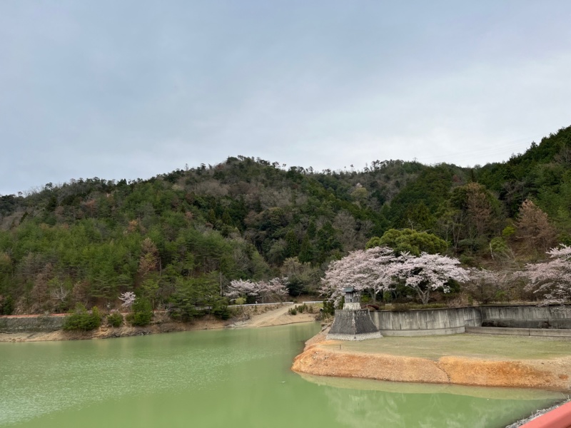 そこから約1時間走って、堰堤の水神様が見えた。