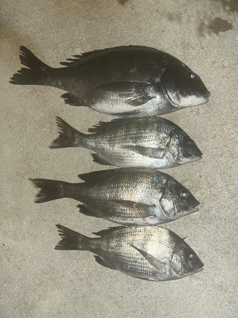 先ほどと違う重量感で上がってきたのは良型のチヌ😁