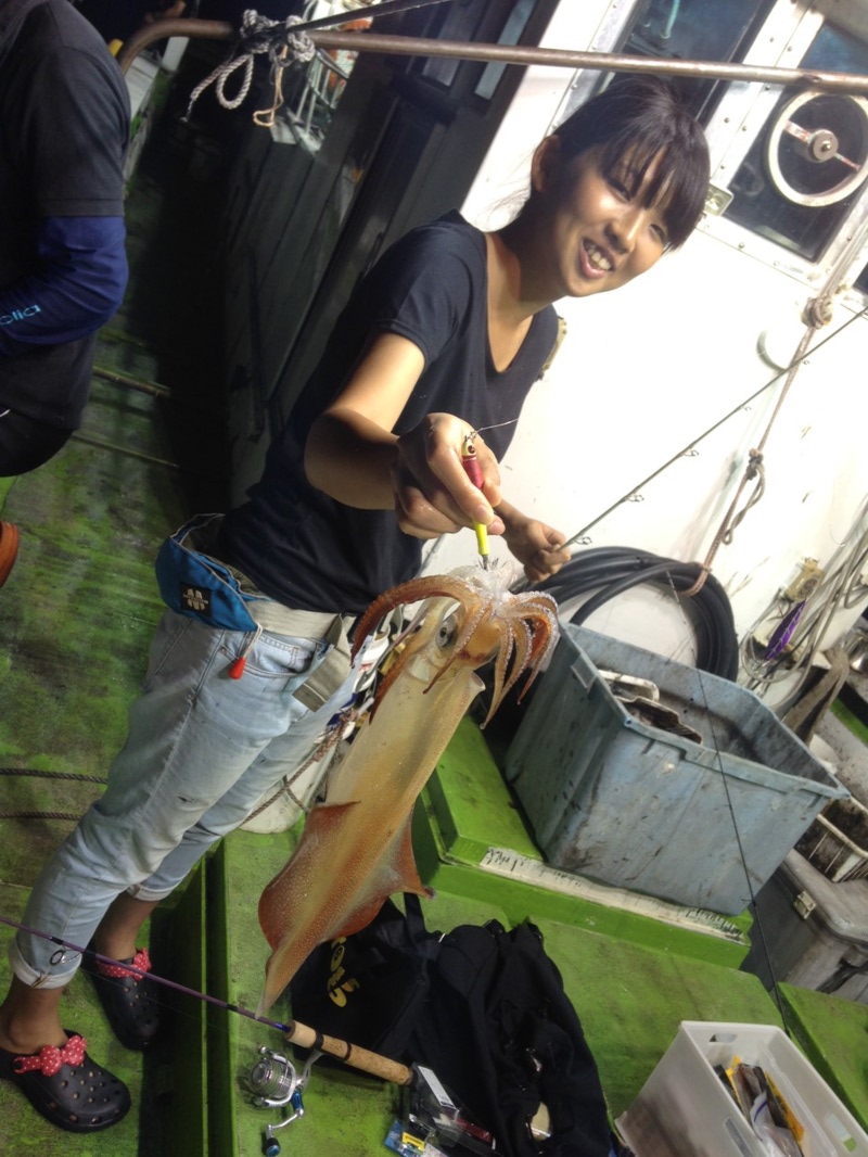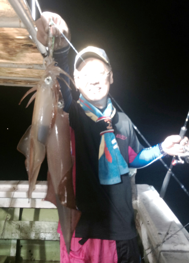 暗くなりそこからは船内のあちらこちらでヒットしますが、水深30~60mと深い棚でヒットしてくることが多く手返しが悪く数があまり伸び悩みました。しかし胴長40センチを超える大型もヒットしとても楽しい釣行になりました。