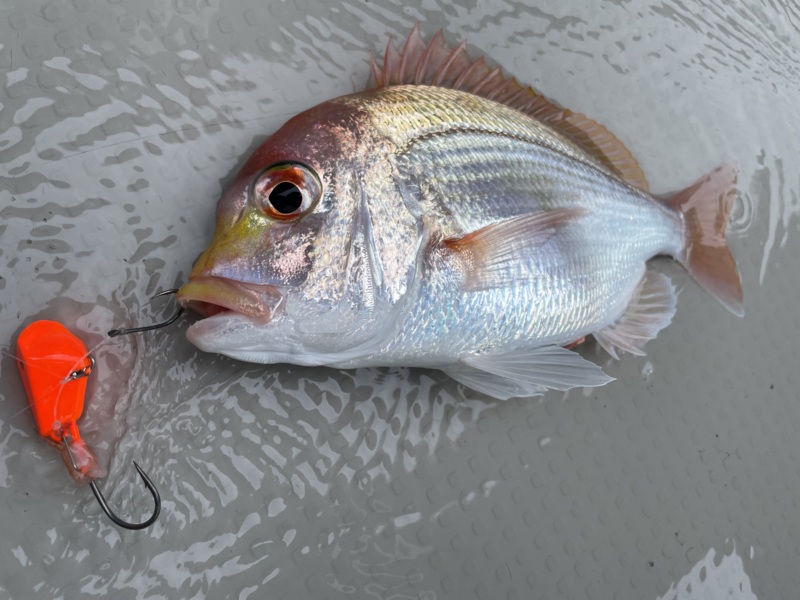 そこからロッドワークでのシャクリあげからのテンションフォールや底から若干きってのロングステイ、ボトム着底→5巻き→フォールなどの1日を通して誘い方を変えて釣り上げていきました✋