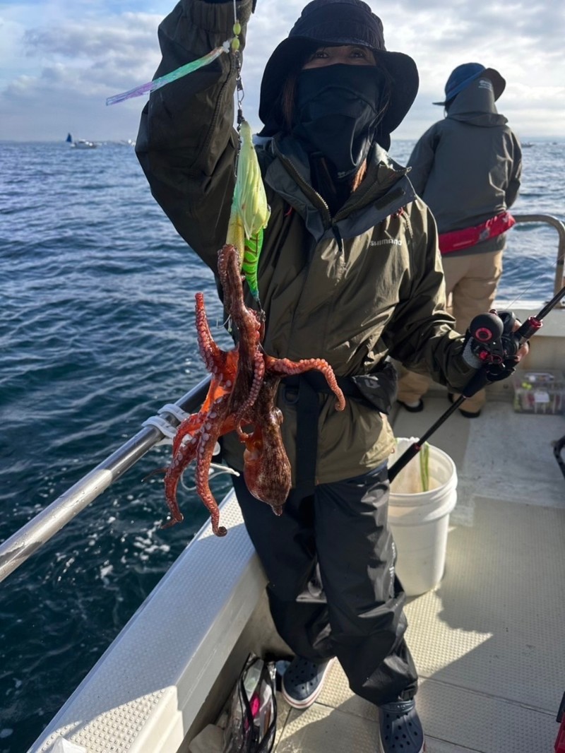 - 竿→船タコ用竿、リール→エランオクトパススペシャル、エギ→蛸墨族、フラッシュブースト、デビルクラッカー等