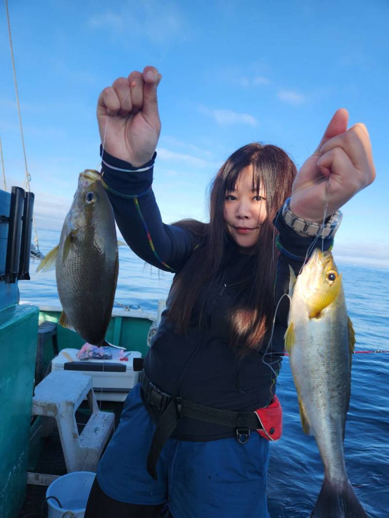 船釣りでのエサ釣りは初めてというスタッフも、はじめは天秤フカセの所作に戸惑いも有りましたが、それに慣れてくると次々と自分でイサキを釣り上げ、良型のイサキもキャッチしていましたよ🎵