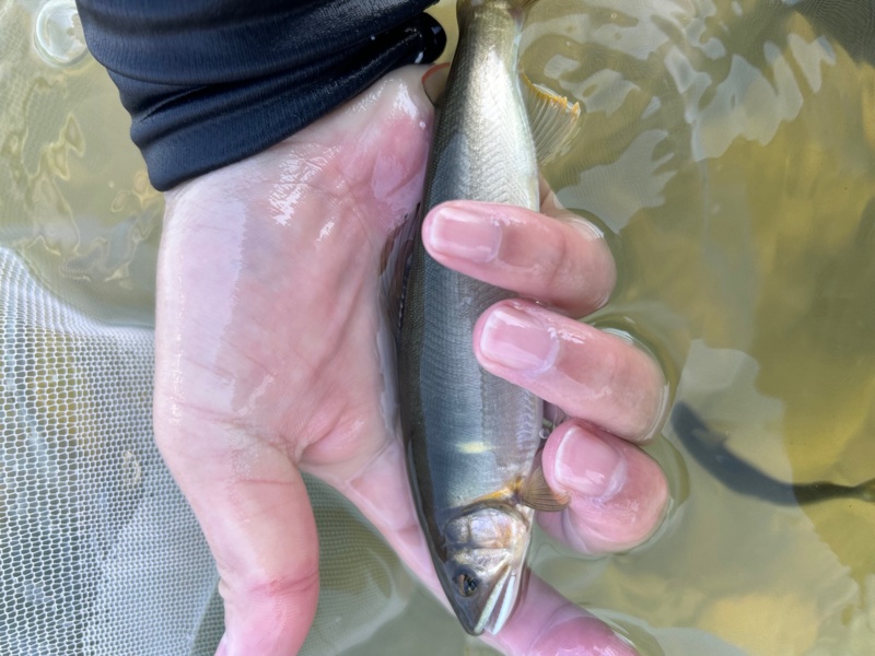 ちび鮎の群れが浅いエリアをピカピカに磨いてました。今年も魚影は濃いのではないでしょうか。