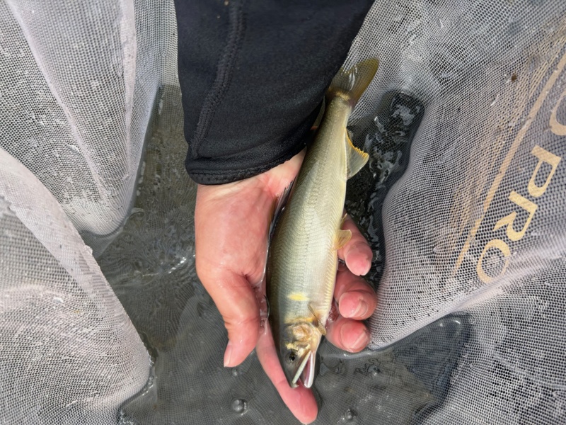 そのまま入れが掛かりを堪能できるかと思っておりましたが台風でも来てるかのような爆風。オトリも凧揚げ状態になり、本流に誰も立ちこんでいない理由を理解しました。