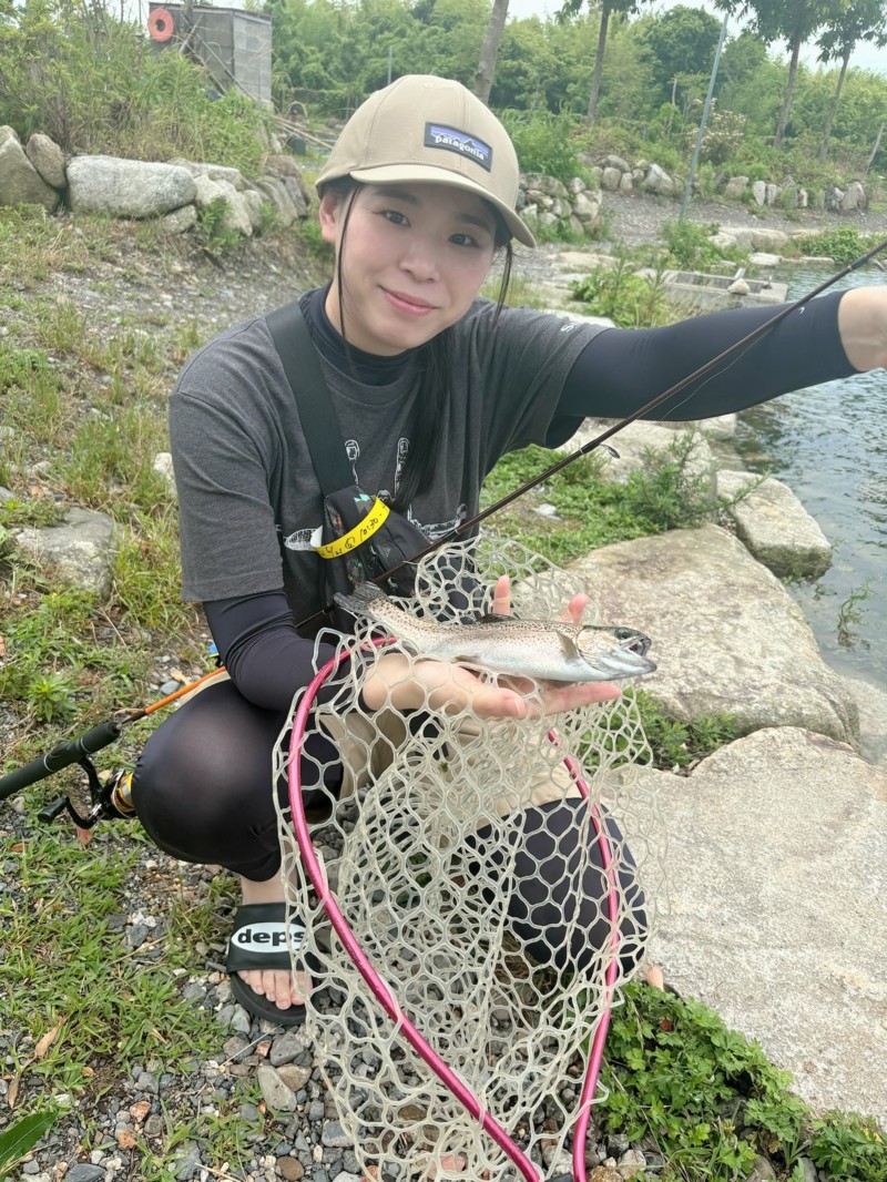 トラウト初心者、釣り初心者のスタッフと子供さんもいましたので、しっかりレクチャーしてもらいスタート🎣