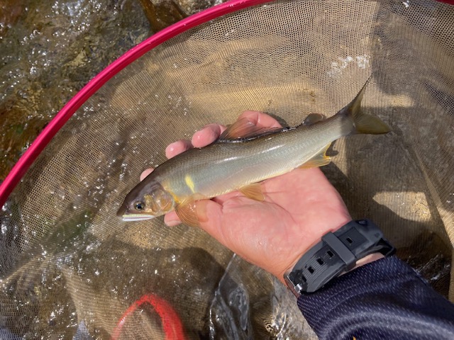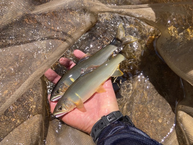 指定されたのは温泉より下流の苦手な流れのゆるい浅場の多いエリアを中心とするエリア。しまったことにベストの中は馬瀬川用の仕掛そのままだったのでフロロもナイロンも無し。
