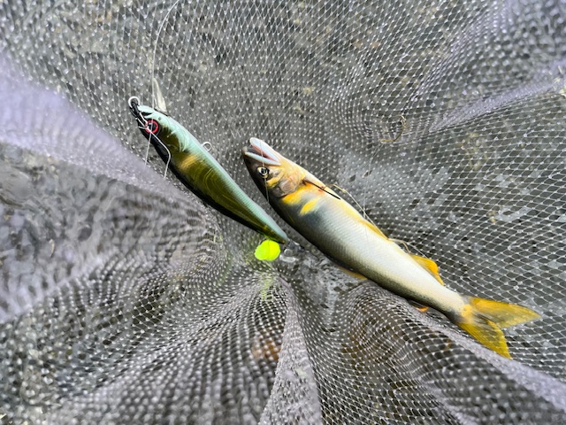 - ロッド:GM ブレインストーム鮎BSAC-90 PE0.6号 リーダー:フロロ1.2号 ルアーは11cmぐらいまでが良かった