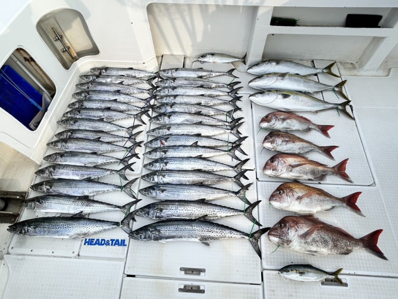 - サワラ10匹、ブリ3、タイ3