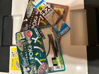 水深5m程度の浅場を流すだけなのと、片天秤仕掛けの一本針なのでトラブルも少なく操船しながらでもお世話ができるので楽ちんです。エサも石ゴカイがベストだったのですが、触れないと苦情がでたのでヒロキューのポケベイトを使用しました。