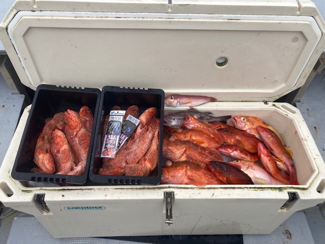 - 竿:ダイワ リーディングX リアル 195-I リール:シーボーグ200J PE3号 テンビン45cm 鬼カサゴ仕掛 針18号