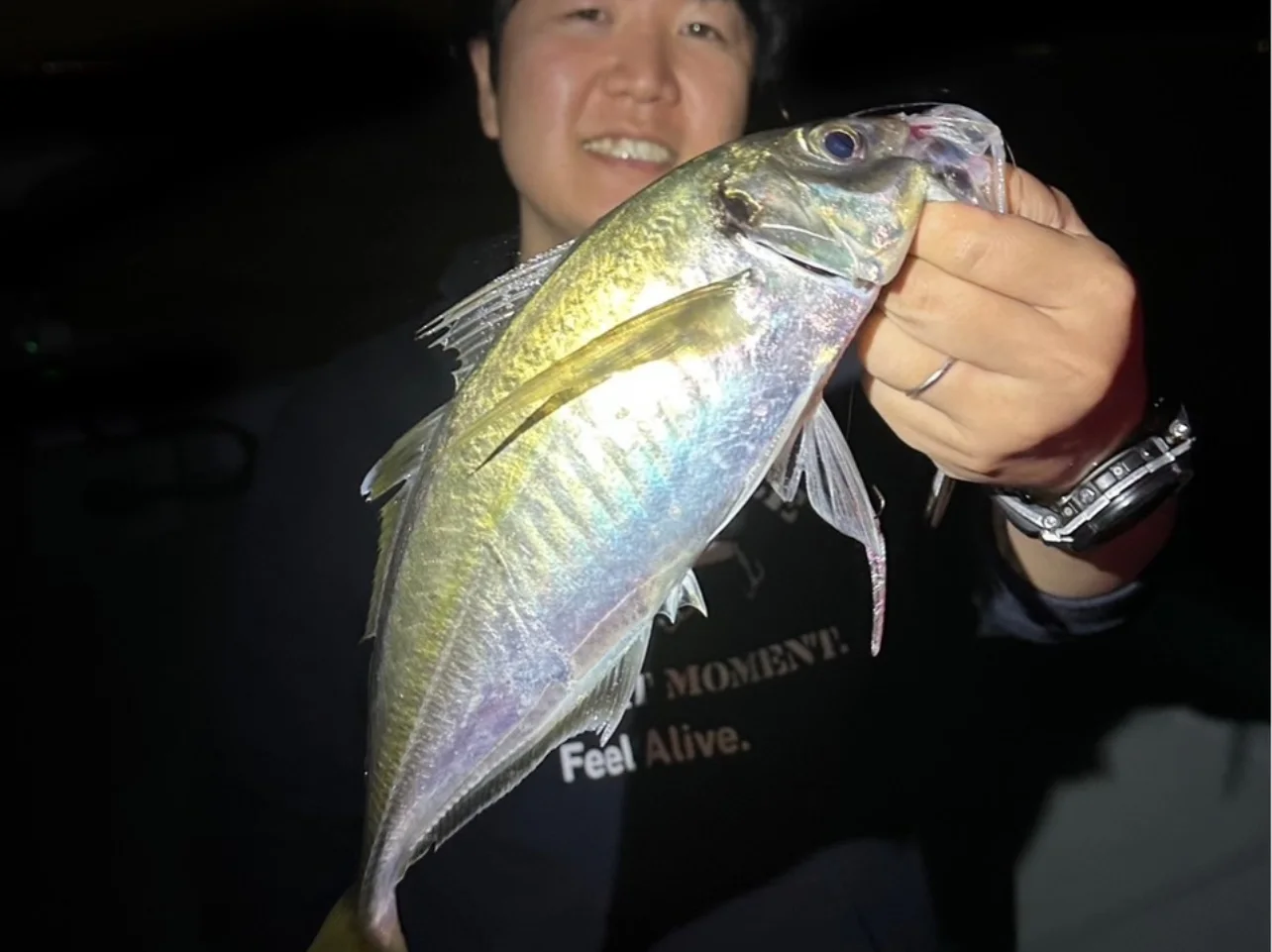 日が完全に落ちてからアジングポイントに移動💨開始数投からコツコツとアタリがあり、ボトムからドリフトさせながら巻き上げ〜テンションフォール。パターンがハマってからは尺前後の良型アジが連発✨️✨️36.5cmをトップに同船者全員尺オーバーをキャッチ出来ました🥰パターン的にもベイトはシラスかと思いきや、お腹はバチがパンパン🤔