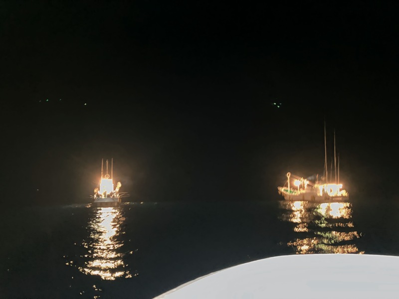 底から3〜4m程を丹念に探る様に船長指示。日が沈むまではヤイトやソーダカツオ、ムロアジの回遊があり賑やかな様相。