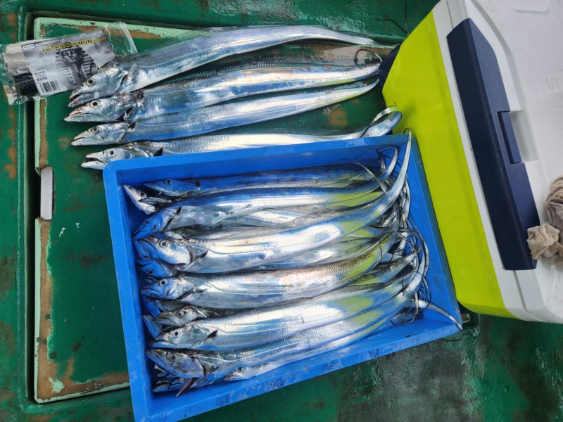 良型タチウオのアタリが出ていながら残念なことにリールの不調で最後のひと流しは諦めて終了となってしまいましたが、良型のタチウオも数匹確保し、ボリューム満点のお土産は確保出来、納得の釣果となりました🎵