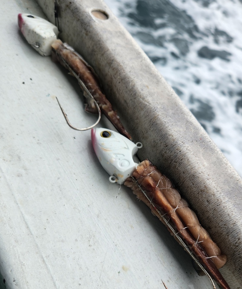 食い渋った時間帯はやはりイワシに分がありましたが、アタリが頻繁に出るシーンではエサ持ちバツグンのサバンカーメンが威力を発揮!