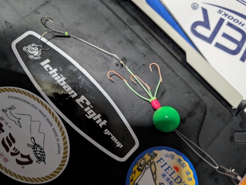 - カットウ一角フグチラシ 《竿》カワハギ竿を流用 《リール》ライトゲームIC pe0.8号