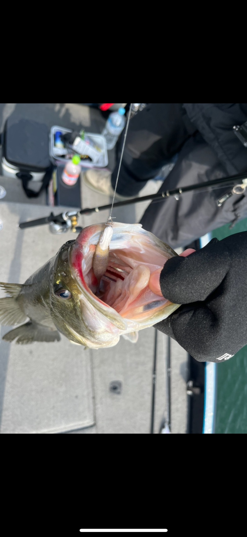 重みもなく巻けるので、もしやこっちに向かってる⁉️と思い、全力で巻いてからのアワセが決まり、47センチ1700の北湖特有の顔が小さくカッコいいバスが顔を見せてくれましたー🐟
