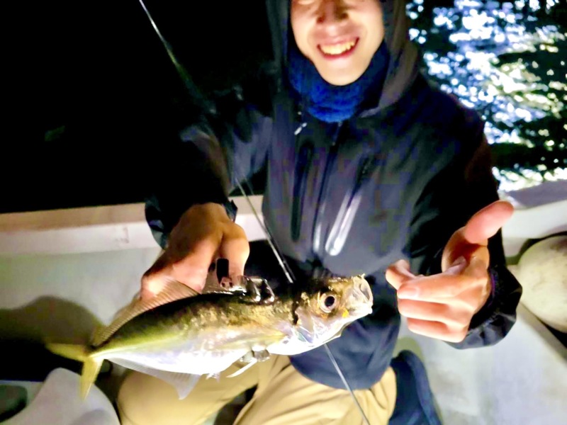テトラでの、アタリが無くなり街灯をランガンしながらボートを流していると25cm以上のアジが連発!!