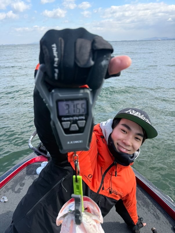 終日、かなりの風と風向きの変化に苦戦しつつも児島さんの指示を信じて苦手なスイムジグを巻き切った結果 57㎝/3.1㎏ 1本!
