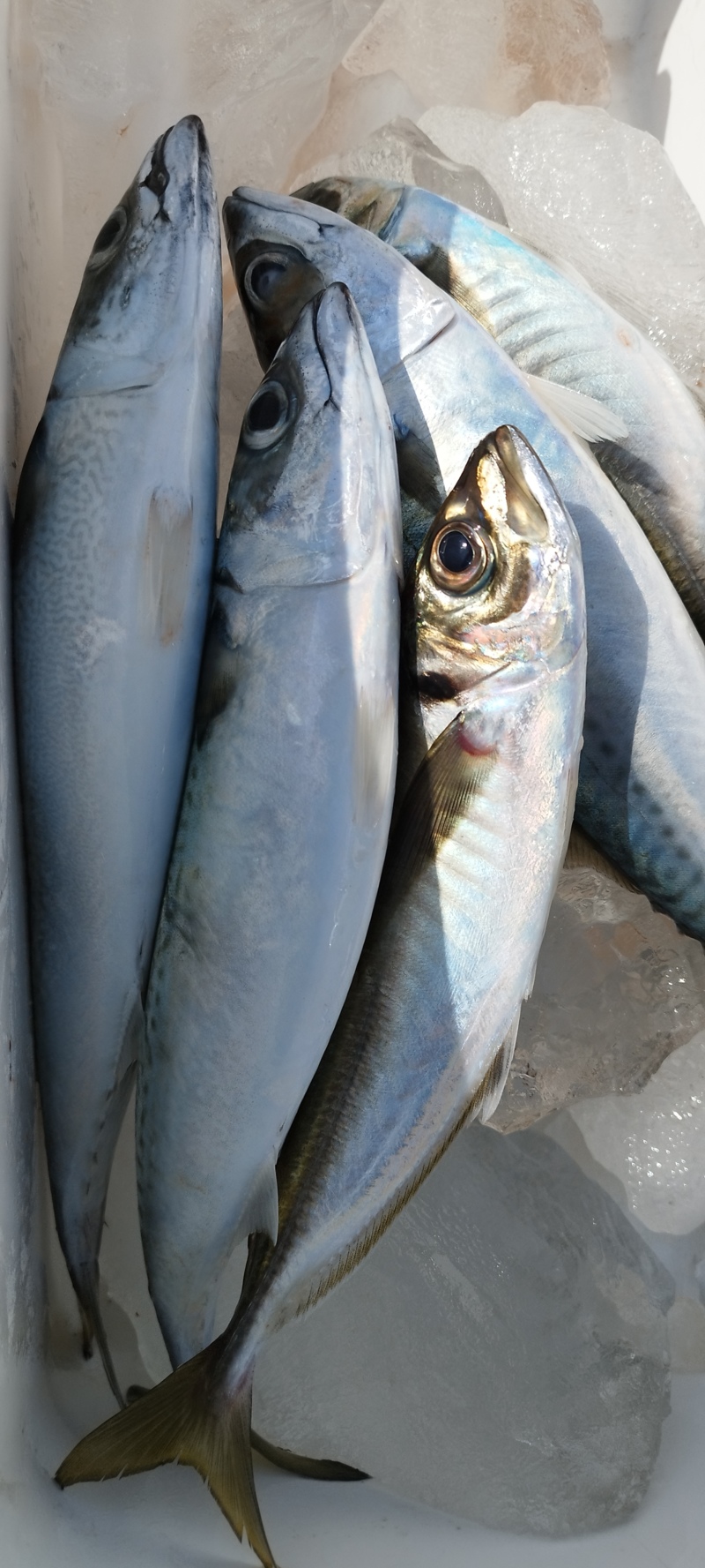 昨日に巻き網が入り、群れがバラけたと中々の難しい時間をすごし、最後のふた流しは船長が新しい群れを見つけ、家族分は釣ることが出来、何とか形にはなりました。