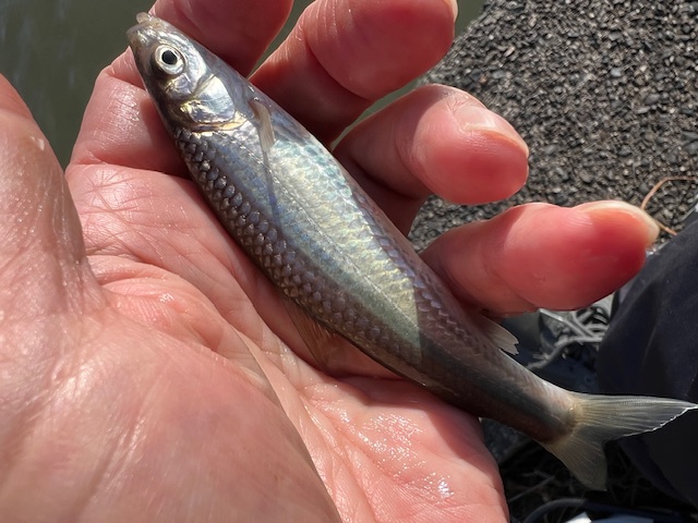 昼間なのに1投目からアタリがあり10cmのレギュラーサイズが。