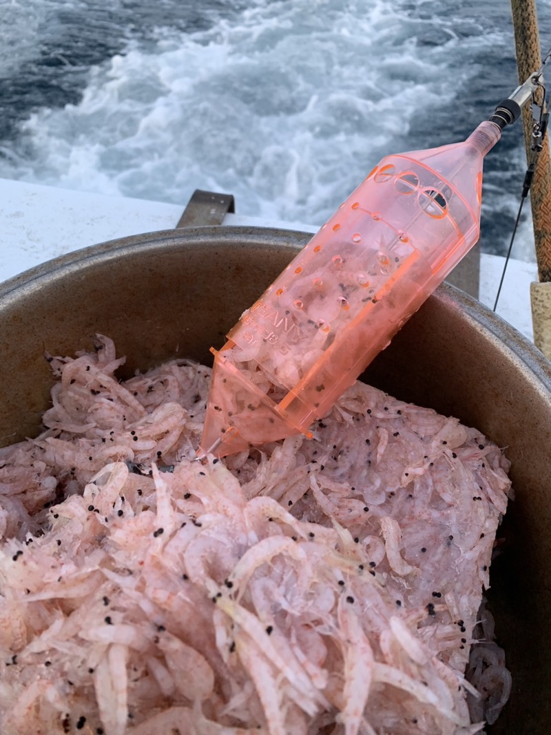 今回は見老津天昇丸さんでお世話になりました、友人と春になると恒例行事のように見老津の五目を楽しみます、数日前からイサキ・ウメイロ・グレが不調で、ダメなら100mラインでアカイサキやお土産を釣って帰りましょうとフィールドへ、天昇丸さんは船頭自らリールのセット、船べりチェック、使用するタックルやカゴの種類など見に来られます。基本天昇丸さんはPE4号 シマアジ狙い以外はサニービッグカゴで統一されてます、オキアミはセットされていてサシエ用のエサのしっぽを切って手返しよくエサを交換できるように準備しておきます、ポイントまで10分イサキ・グレ・ウメイロを狙いましたが反応がいまいちだったので、クッションゴムを外してオモリを60号から80号に変え深場へと移動しました、着底後5m切って、その棚から10mこませを出しながら誘います、90mラインでスプールが止まるとサバ確定です、うまく90mラインをすり抜けると何か当たって来ました、アカイサキやヒメダイがよく当たりましたが、50㎝級のオオクチハマダイも釣れていました、一緒に行った川上氏も天昇丸初のカケハシハタを釣り上げました、船頭さんは熱血指導派の方でしたが、いろいろ勉強することが多くいい経験させて頂きました。