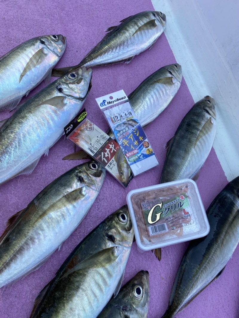 釣果の方ですがジャンボアジは2人で25匹、尺前後のアジも2人で約20匹ほど釣れまずまずの結果でした🐟