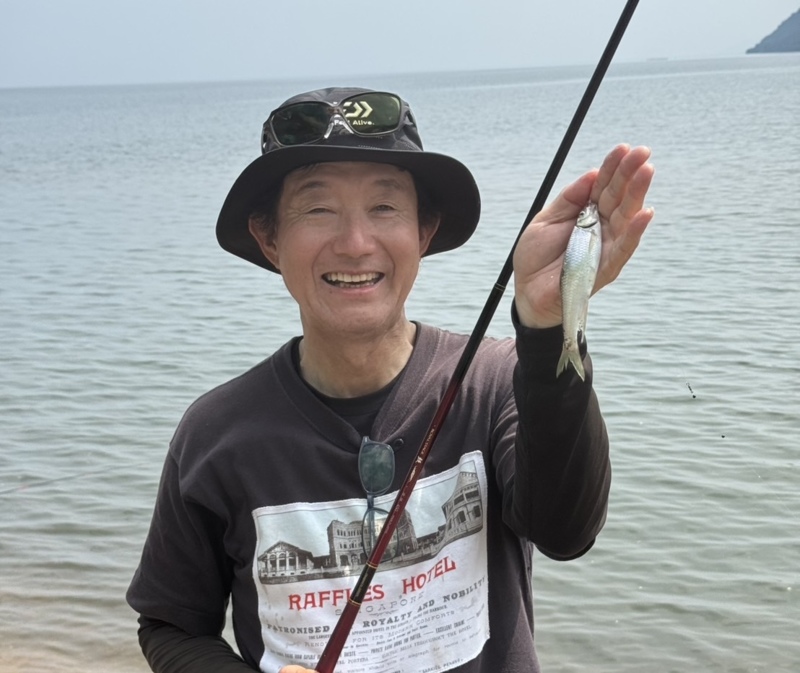 比較的浜から数メートルに小鮎の跳ねが見られたのでウエダーを履いて短竿でやりました。