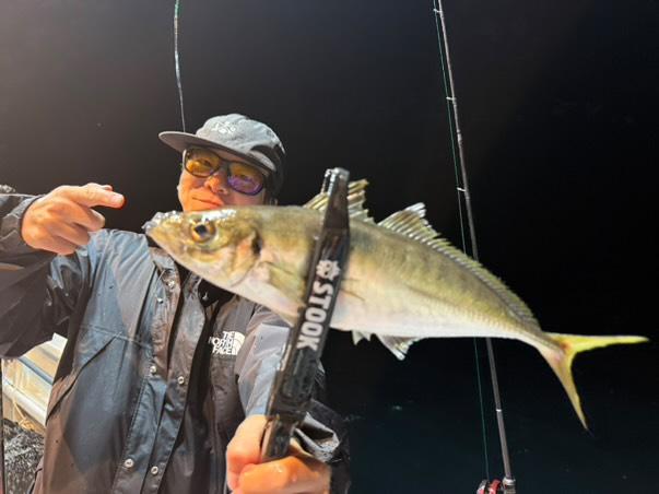 開始から30〜40分ほど経った頃、スタッフの一人が30cmを超える良型のアジをヒット‼️