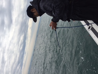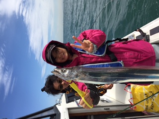 10月5日、西宮市の釣人家さんにお世話になり、大阪湾で太刀魚テンヤに行ってきました。すると、初めの2,3投目ですぐにヒットし、長谷川、竹田さんのダブルヒットで幸先の良いスタートを切りました。しかしこの後なかなかあたりは来ず、他の乗客の方もあまり釣れていない様子でした。そんな中、中村さんの竿にヒットが!みごとな太刀魚を釣り上げました!その後に竹田さんの竿にもヒットがあり、指4本半の太さの太刀魚を釣り上げました。時間も終わりに近づいていき、もう1匹くらい釣り上げたいなと思っていたその時、長谷川の竿にヒットが来ました。最後の最後にやった!と思っていたら、竿が一気に軽くなり、ばれてしまいました。それと同時に隣にいた安藤さんの竿が一気に曲がり、長谷川の竿にかかっていた太刀魚が隣へ移ったという事件?が発生しました。最後の1匹は、長谷川と安藤さんが協力してあげたという事で…いいですよね?
