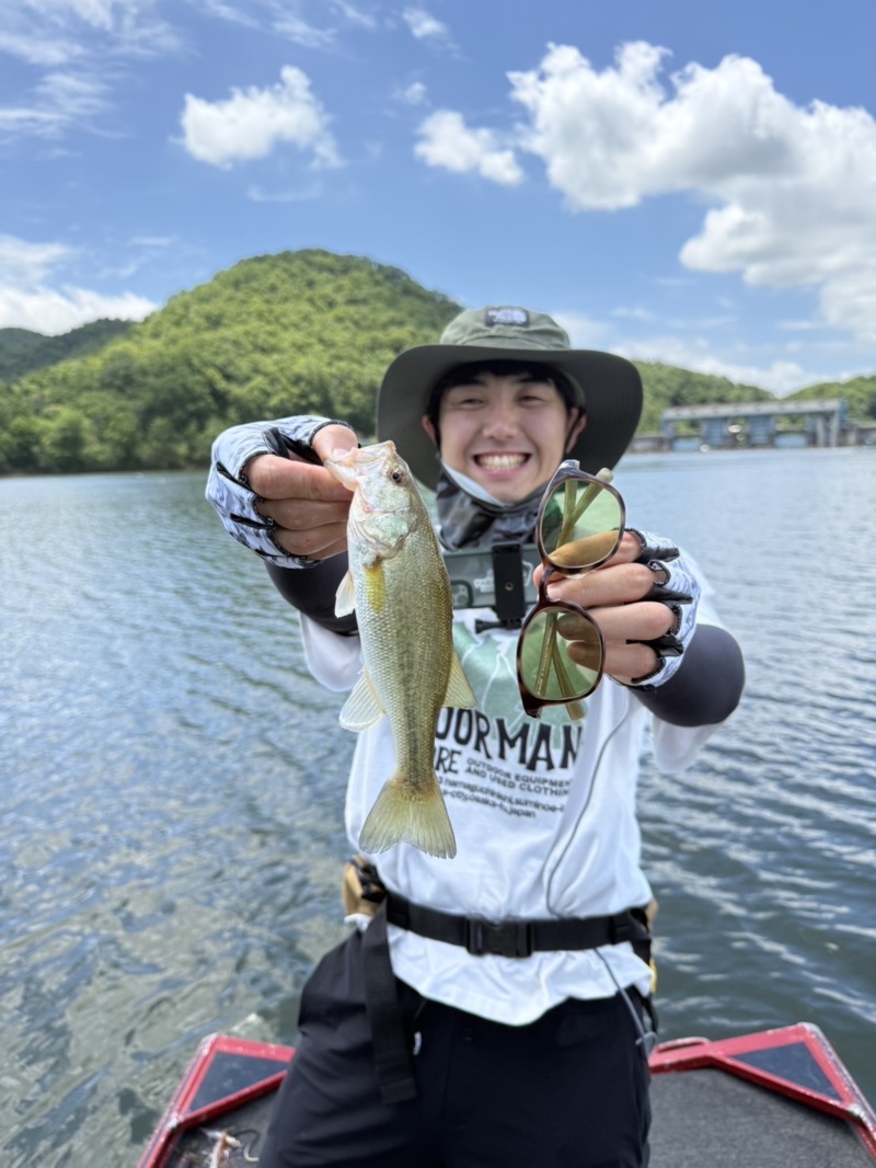 朝イチから沖のエリアをフリーリグ、ダウンショットで回っていると酒井にいきなりヒット❗️