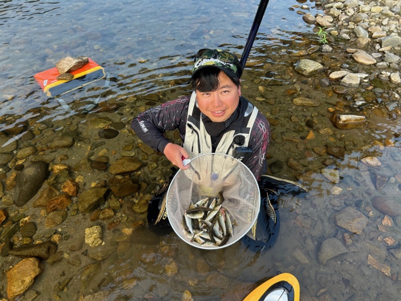 深みのトロ瀬ポイントには地元の方が入っており、安定して釣っておりアユが溜まるポイントは釣れないながらもあるようでした。