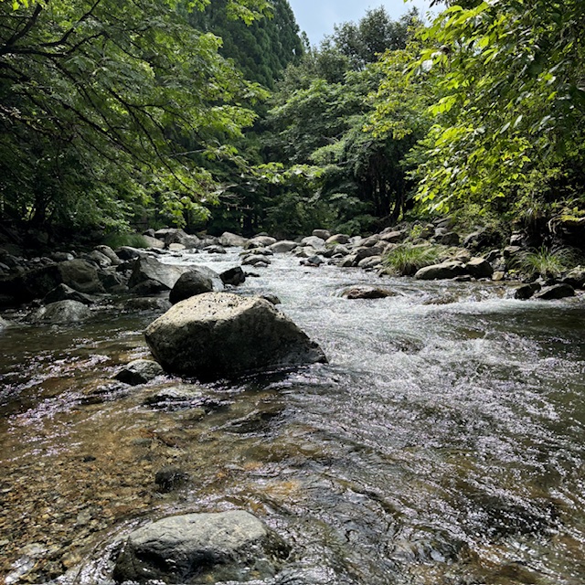 今回はテンカラ縛りで行きましたがどこのポイントも鮎が沢山泳いでいました。特に支流では群鮎になっており、どれも良型で道具を持ってくればよかったと後悔しました。
