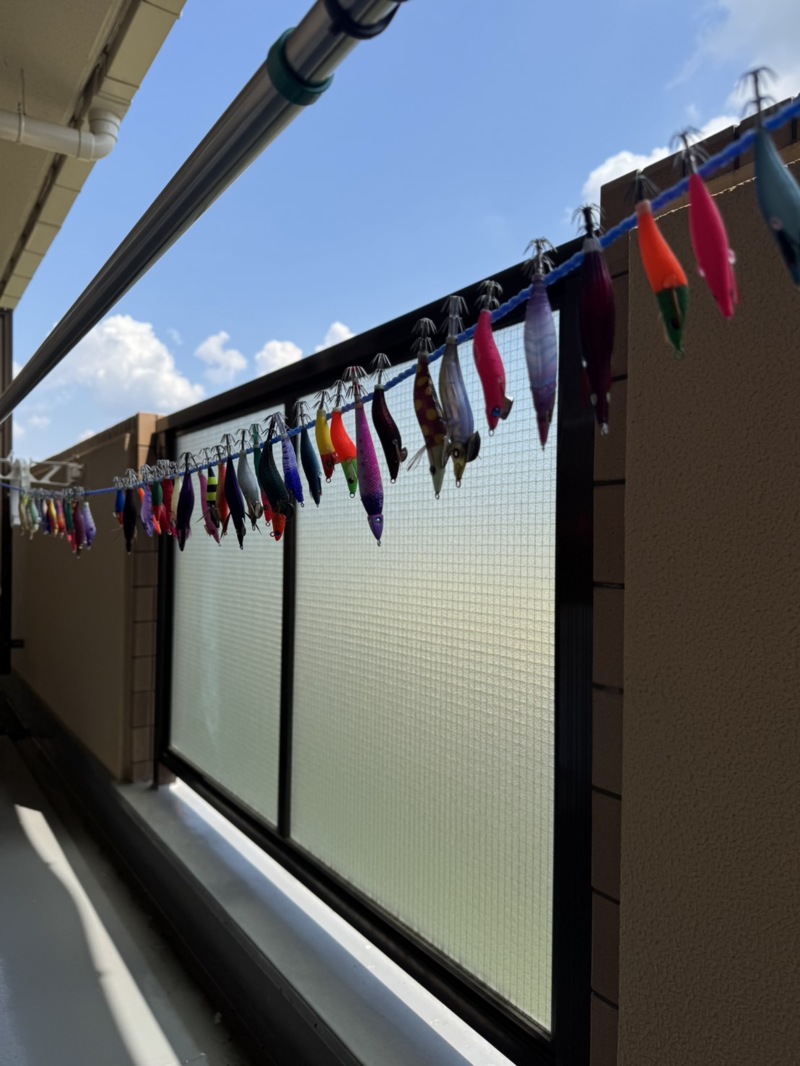 19時半ごろにライトが点灯すると、アタリは中層(25〜35m)に浮き、ここからはイカメタルに切り替え。ムラサキ系スッテが大当たりで、中層をドリフトさせると連発モードに突入🦑🦑🦑