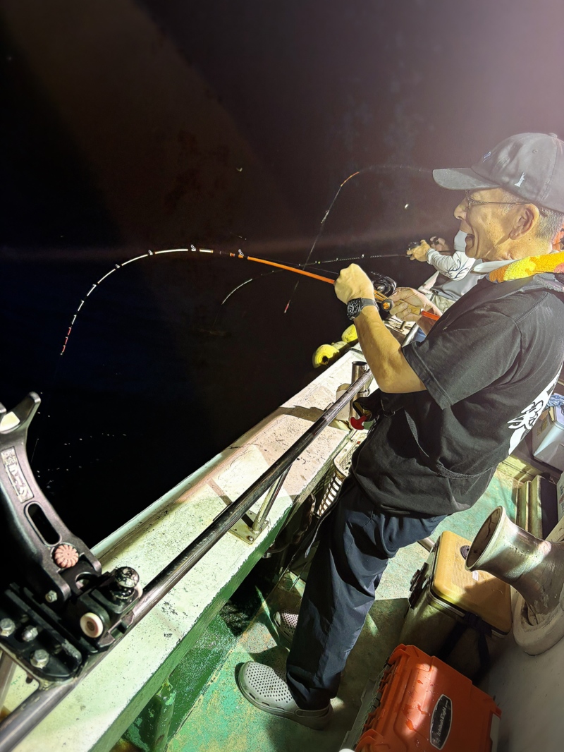漁火点灯でこれからが本番と思いきや激渋状態で、通常のテンポの良い誘いは全くアタリは無く、今回は優しい誘いとしっかりした止めでアタリが出ました。