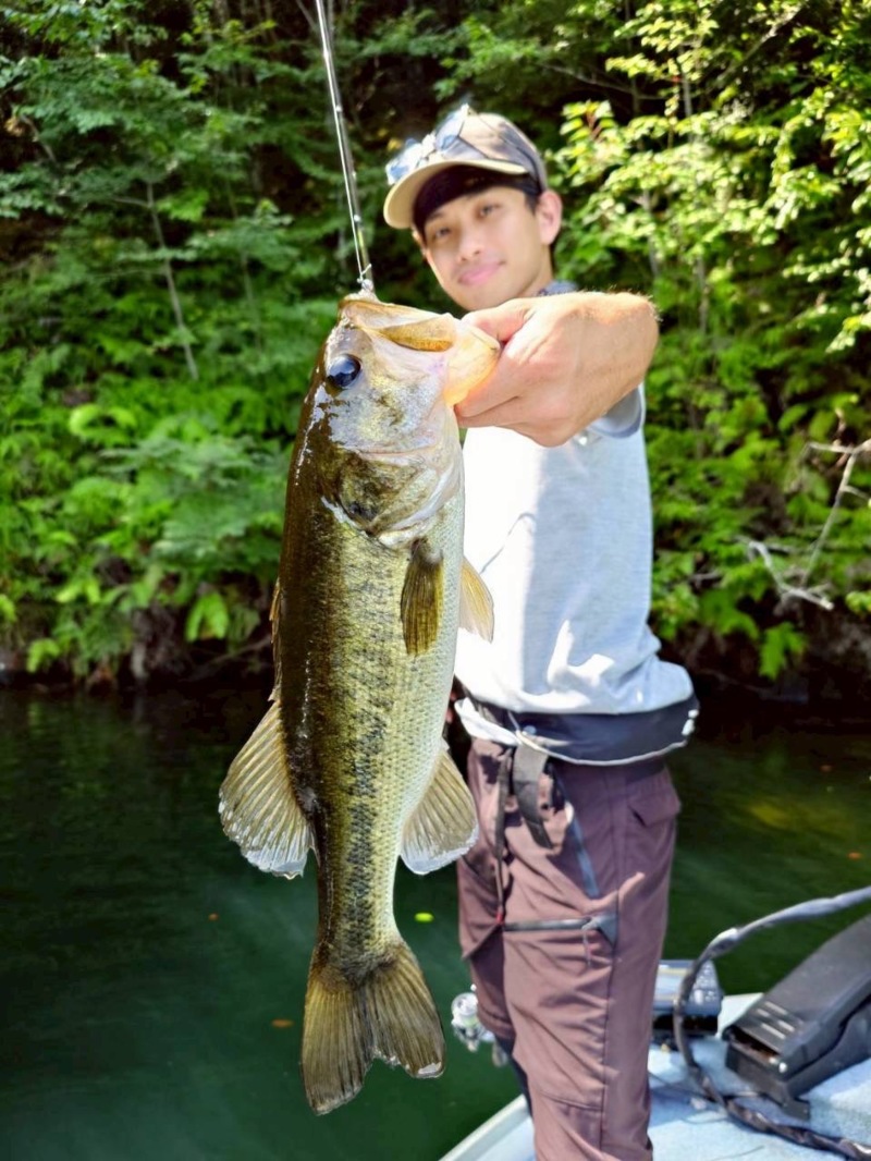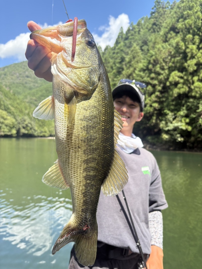 酷暑で濁りがきつくバスを探すのに全員苦戦しましたがなんとか釣れました!