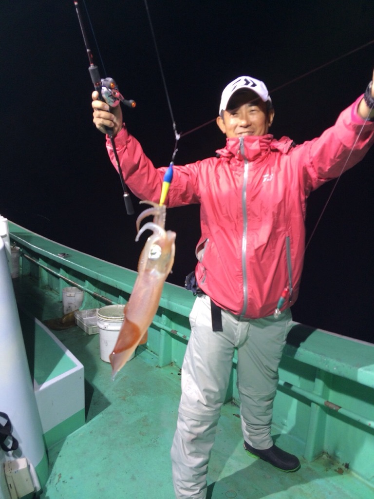 仕掛けの考え方、誘い方のパターン、スッテのカラーに対しての考え方等、本当に色々と教わりました。しかし、あいにくケンサキイカはいらっしゃらないようで、大西さんでも4匹。自分は2匹。他のスタッフは秘密の釣果で終了しました。それでもスルメイカが少し遊んでくれたのでみんな誘い方とアタリの出方についてはつかめましたので来期のメタルスッテシーズンには大西名人直伝テクニックで頑張りたいと思います!