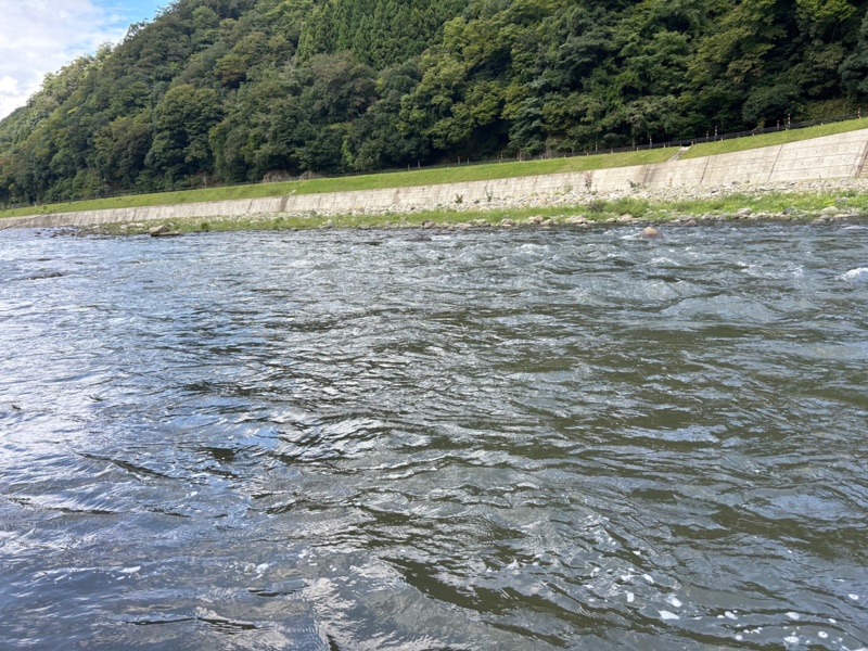 当然ポイントもチャラチャラの流れに変化。濁りも取れ一面で鮎が食み倒しているのでじっくり泳がす釣りに変更。