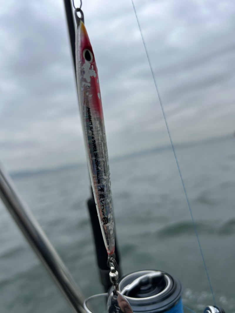 さて、ここからは藤原の個人的なサワラに対する考察ですが、船中でブレードジグの早巻パターンで爆釣している中、藤原はデカい魚はデカい物理論でマッチザベイトとは逆のセミロングジグにブレードを付けて早巻をしていました。
