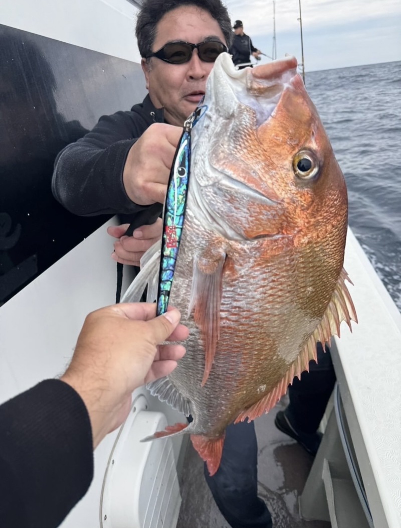 当日は潮と風向きが喧嘩しており、潮が効いているタイミングや、風の強いタイミングでは200gだけでは、ジグが斜めに飛ばされてしまい、2回底をとるとすぐ回収しなければいけないほどで、250g必須の日でした。