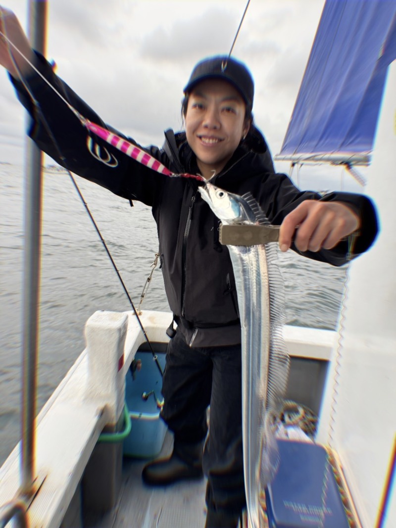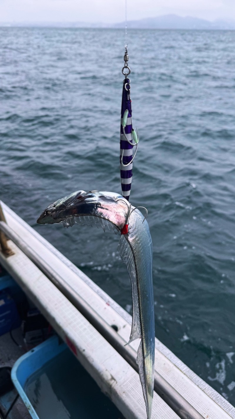 しゃくっている途中でヒット!3本指サイズの太刀魚が釣れました✨