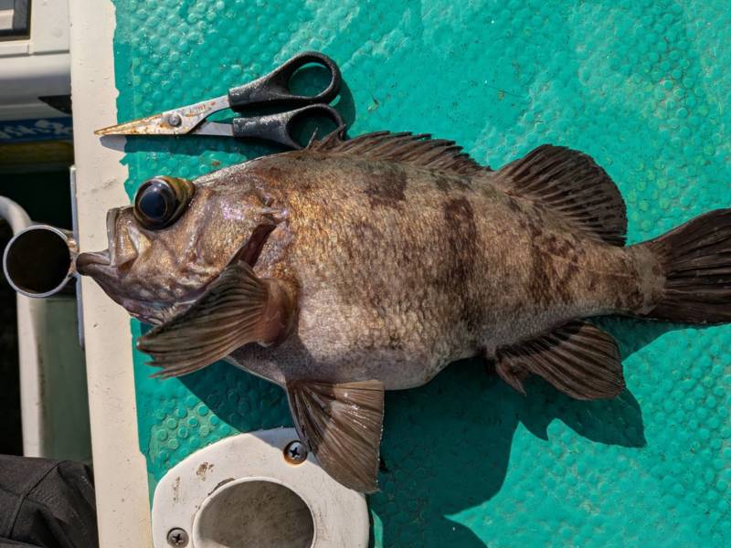 ゆーくりゆーくり巻き上げていくと明らかに体高が一回り大きいメバルが海面に見えて興奮!!