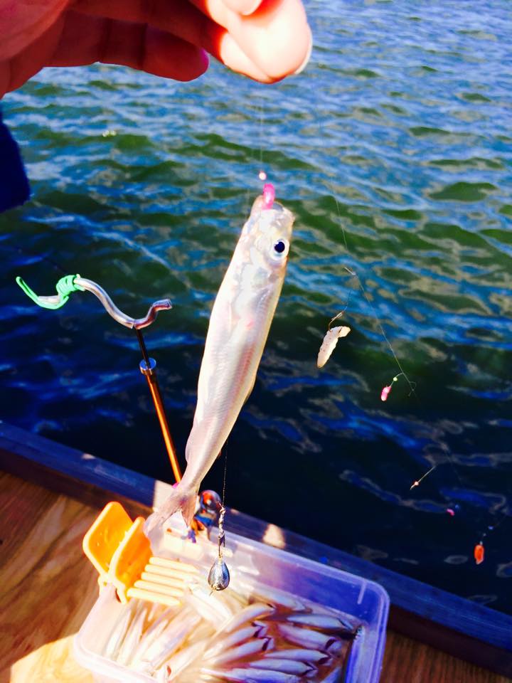 アタリがなければ棚を下げ、たたいて誘うを繰り返し釣果は4人で400匹ほど。