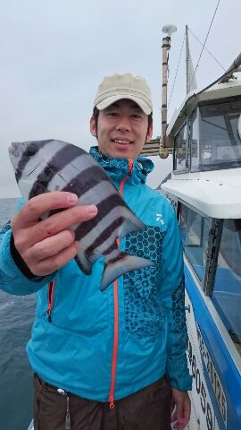 前日からの雨も上がり、なおかつ数日前から食いが本格的になってかなり期待大で6時半に淡路島の土生港を出港!朝一番は沼島の北のポイントに入り、少し流すと待望のヒットとなり30cmクラスが上がる。さらにいい引きを見せたのは35cmオーバー!これからというところでしたが、チャリコの猛攻と少しうれしい良型のウマズラのみで本命はなかなか上がらず、12時の納竿までに4枚を追加したのみの厳しい状況でした。日によってかなりムラのあるサンバソウ釣りですが、予約もなかなか取れないこの時期の人気の釣りです。また、食味も最高で気軽に狙えるイシダイ釣り、1月いっぱいまでがオススメです!!