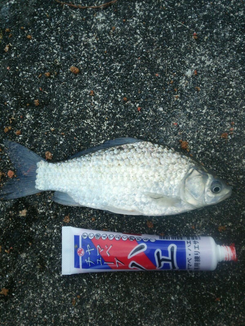 この時期よく釣れる寒バエ釣りに近江八幡は長命寺川へ行きました。夜明け7時頃からスタート。全体的に底は変化のない砂泥地。ウキ下の調整でところどころ探って比較的落ち込みのある場所を選ぶ。水深は足元から約2メートル前後。撒き餌は必需品でピンポン玉の大きさに作っておく。撒き餌はマルキューのハエ競技用まきえ。流れが左右にゆっくり流れるので撒き餌ポイントは正面に打つ。仕掛けは竿5メートルに発砲ウキ、がん玉8号の多段仕掛け。ハリはハエスレ2~2.5号。エサはマルキューのヤマベハエチューブ。ウキのトップが5ミリほど出るくらいしぶしぶの感度にする。冬の寒バエのアタリは流れの緩やかなポイントではあたりが微妙でウキの抑え込みが1~2ミリ程度しか出ない。少しでもウキに違和感が感じたら合わせるようにする。風が強くなるお昼までで約70匹の釣果。1日粘れば100匹は数釣れそうだ。