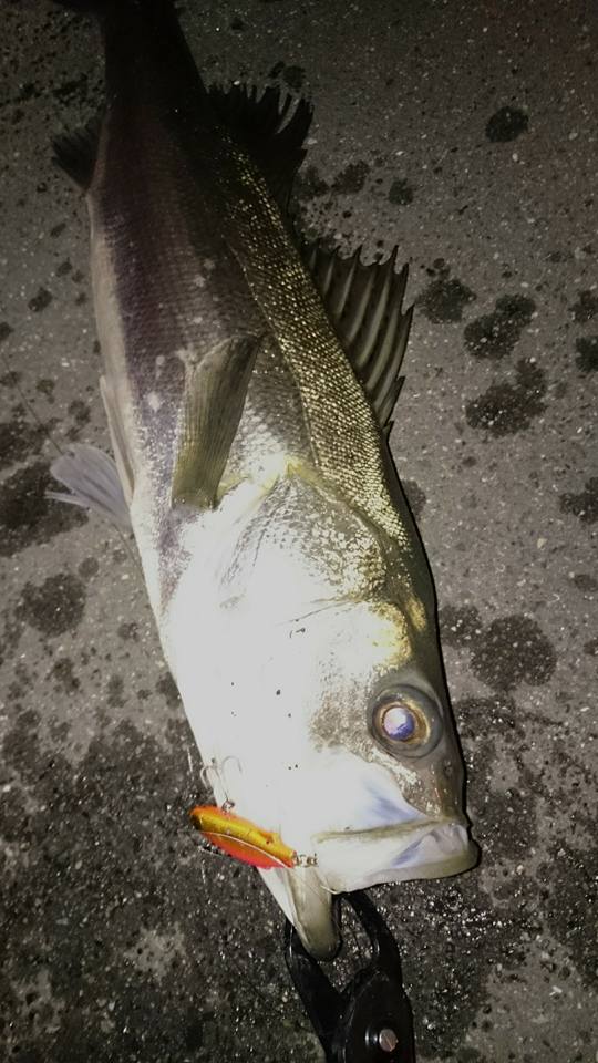 ただ、良いポイントには、やはり居着きのシーバスがおり、粘ってなんとか一匹釣る事が出来ました(^_^;)