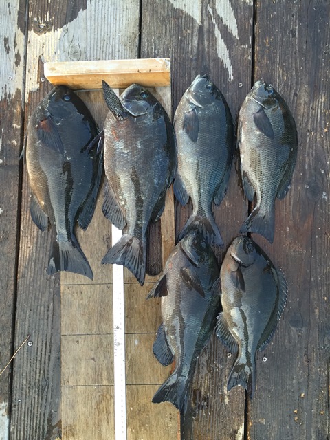 その後、41cmと30チョイのグレを二枚追加し、後半水が冷たくなったせいかエサ取りもつれない状況...