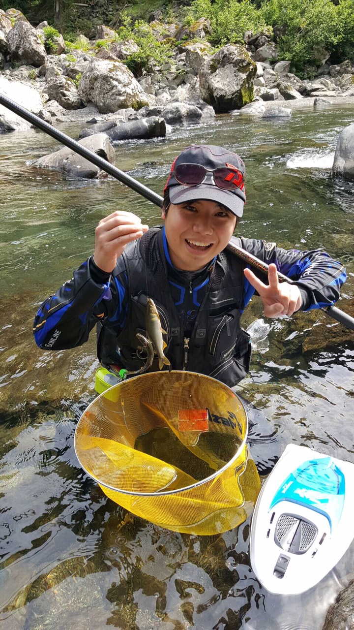 マンツーマンで教えて頂きながら慣れない手つきでトロ場の大きめの石の後ろにしつこくオトリを送ります。